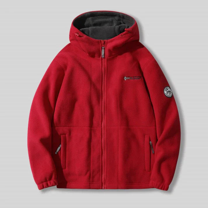 Double-Layer Fleece Hooded Jacket – Warm Zip-Up Outdoor Winter Coat