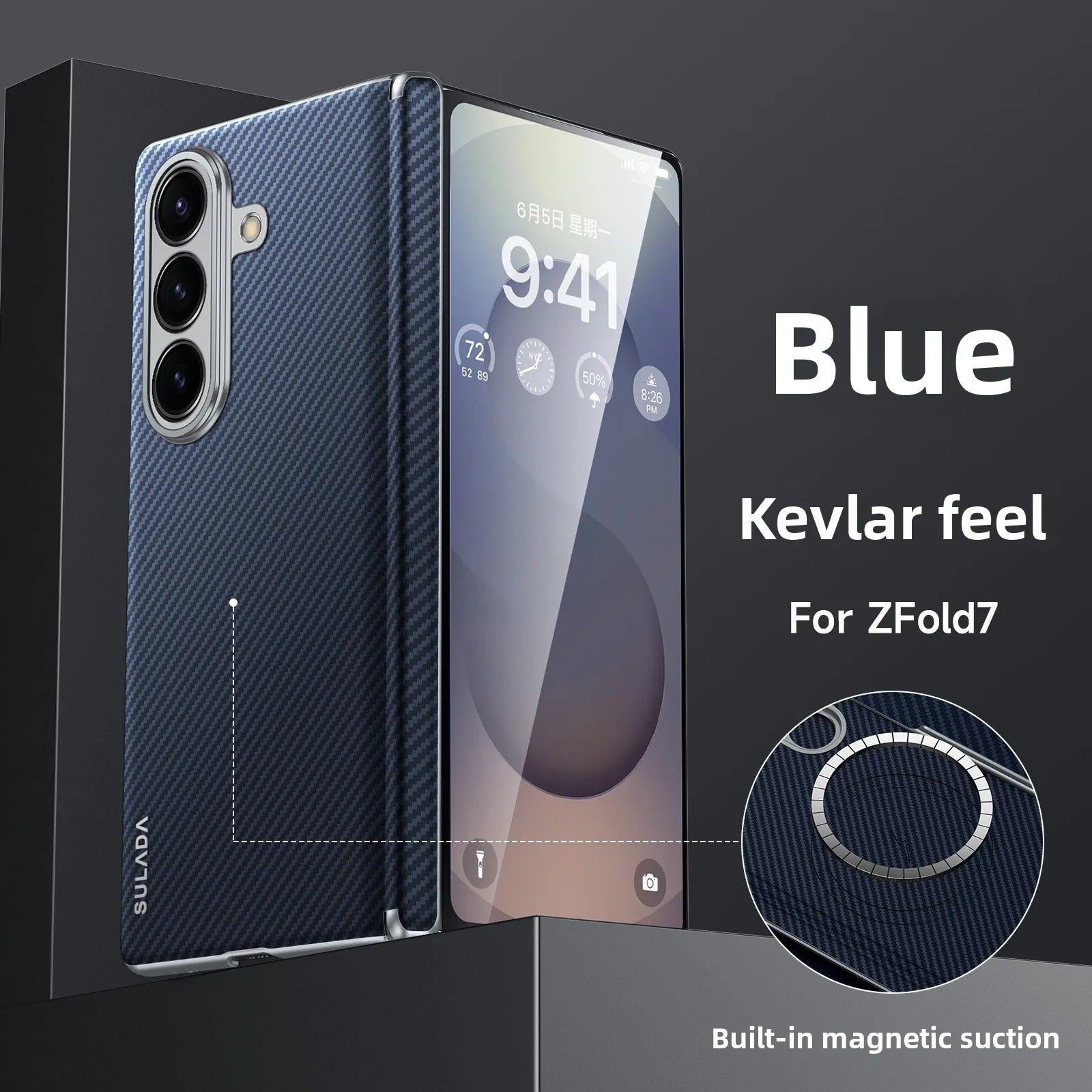 Give your Galaxy Z Fold 7 the premium protection it deserves with the KevlarShield™—a ultra-thin, Kevlar-textured, magnetic-charging–friendly case designed for durability, elegance, and perfect hinge coverage.