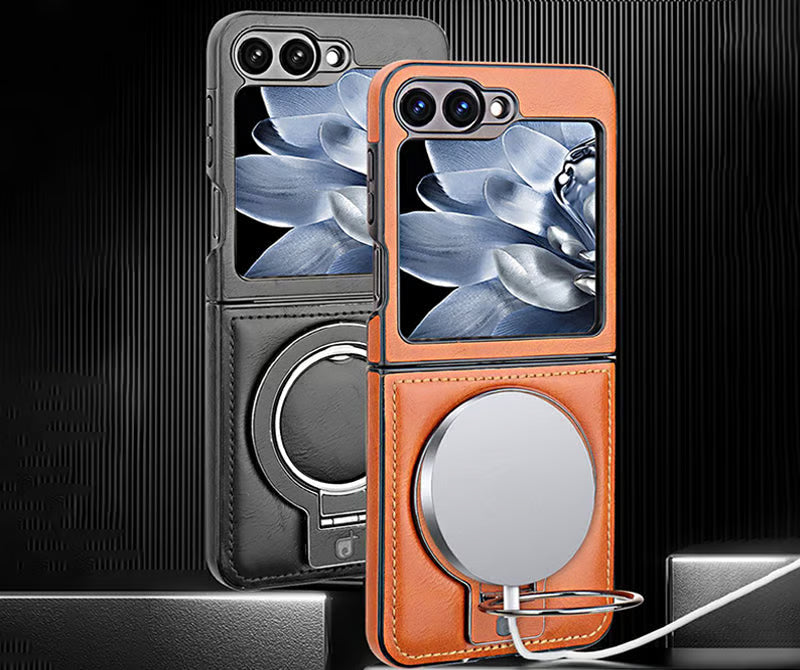 Give your Z Flip the elegant protection it deserves. This Magnetic Bracket Leather Case combines premium leather texture, magnetic stand functionality, and hinge-safe construction into one sleek luxury cover.